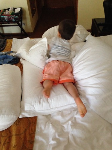 Baby T. ADOROU! O "xitio novo" foi toda uma descoberta - corredores intermináveis para fazer corridas, almofadas para dar mergulhos na cama, piscinas para dar mergulhos verdadeiros, praia, restaurantes...