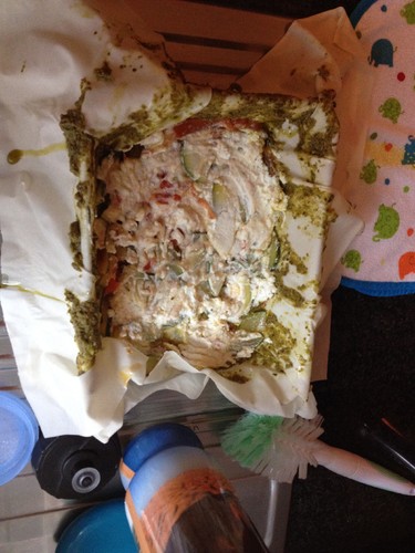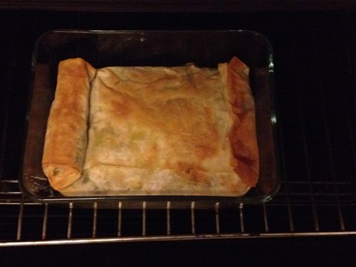 Eu basicamente salteei em azeite e sal tomate e courgette aos cubos, e pus a mistura devidamente envolvida em queijo ricotta dentro de massa filo barrada com pesto - azeite por cima e por baixo, 20 min de forno e já está! Uma delicia!